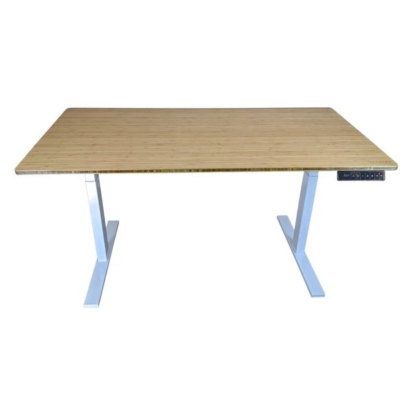 RISE UP electric standing desk is built with best-in-class components and has over a decade of field-tested durability in the most rigorous office environments. Improve your posture by customizing desk height to fit your physique and enjoy the freedom to flow through your work day sitting or standing with Rise Up electric stand up desk. RISE UP’s motorized office desk frame features: dual motors, memory keyboard, 3-stage columns, an adjustable height + width laser cut frame. We build Rise Up with two premium motors: dual motor standing desks are faster, smoother, and have a longer lifespan than the cheap single motor models. In electric standing desks, the motors make a huge difference in function & durability. With over a decade of R&D, our motors are built to last and feature the latest anti-collision technology. The memory keypad makes adjusting your office desk height simple: use the automatic up/down controls and store 4 of your favorite height settings for an even quicker adjustment. The premium 3-stage lifting columns create a taller height range and safely lift heavier loads than the cheap 2-stage models. This adjustable height electric desk frame is topped with a beautiful 60×30” solid bamboo desktop with a premium non-scratch finish that looks great in any office environment. ** Features of Rise Up the Best Electric Bamboo Standing Desk ** – 3-STAGE LIFTING COLUMNS more height range and a heavier lifting capacity – DUAL MOTORS fast, smooth, even adjustment – ADJUSTABLE WIDTH FRAME fits your space – ANTI-COLLISION helps prevent lowering the desk onto an object ** SPECS ** – Frame Width: 42.3-71” – Height Range: 26-51.6” – Frame Depth (front-to-back): 25.6” – Lifting Capacity: 250 lbs – Frame Material: Steel – Frame Features: 2 Motors, 3-Stage Lifting Columns, Anti-Collision – Control Panel: Auto Up/Down + 4 Memory Presets – Desktop Size + Material: 60×30”, Solid bamboo