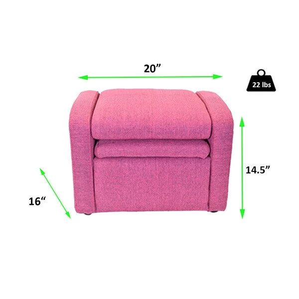 The STASH Folding Kids Sofa Chair is soon to be your child’s favorite chair. Lift the seat to reveal a hidden, built-in internal storage compartment that’s the perfect place to store toys. The back folds down converting the comfortable children's’ sofa chair into a fun ottoman that’s great for sitting, propping your feet up and can be the launchpad for your child’s next adventure. STASH is a small upholstered (fabric) chair with a sleek modern design that fits the decor of most rooms. It’s the perfect playroom chair – giving your child a space they can call their own as they sit, lounge, nap, play and store their toys all in this modern sofa chair. STASH is a plush, comfortable kid’s lounge chair with a sleek modern design that fits the décor of any living room. Place STASH in your child’s bedroom for a fun reading chair. STASH is a cute, comfy and unique modern sofa chair that gives kids & toddlers a fun place to sit in any room. Yes, adults can sit on STASH too! This mini upholstered chair isn’t just for kids – most adults can sit comfortably either in the small folding chair or on the ottoman for a convenient seat when playing with your kids. STASH Folding Kids Chair Dimensions: 21 lbs Back Folded: 20x16x14.5” Back Raised: 20x16x25” Storage Chest: 7.5x13x14.5” Material: Fabric About UNCAGED FURNITURE: We believe your home furniture should do more and are on a mission to design modern furniture with a focus on modular, multi-functional home furniture designs. The STASH Folding Kids Sofa Chair is our first product – a fun kid’s sofa chair. It’s the perfect folding children’s chair that even adults can use. We think this kids sofa chair is awesome and hope you’ll love using this fun children’s chair as much as we did creating it!