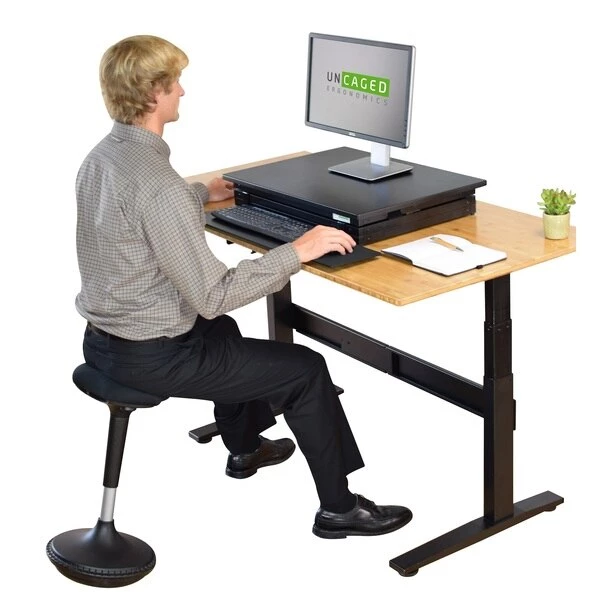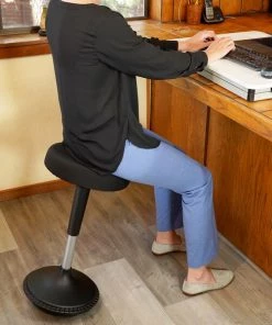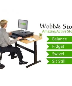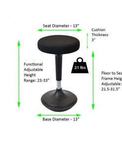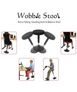 Wobble Stool is the perfect balance chair for active sitting. This ergonomic office stool creates a healthier sitting environment by moving with you throughout the day – safely rock, swivel, tilt, lean and burn calories while sitting. Originally designed to be the best standing desk stool, Wobble Stool extends tall enough to let you perch near standing height, making the move between sitting and standing fast and effortless. – BALANCE STOOL: Wobble Stool’s patented base lets you sit still or gently rock, tip, twist, lean and swivel 360. Move more and sit actively with this unique office balance stool. – STANDING DESK STOOL: the best perching stool for standing desks. The height adjustable Wobble Stool extends to 33", letting you rest from standing without going all the way down to a normal height chair. Wobble Stool is easy to sit on and quick to get up from. – COMFORTABLE OFFICE STOOL: NEW round, dimpled seat is engineered for better comfort! Wobble Stool has a 3”+ thick seat cushion made of premium molded foam that waterfalls over the edgeless seat frame and is covered with a premium fabric for a cool, comfortable seat. – DURABLE ROUNDED BASE makes it easy to rock, swivel and move around while sitting. You don't need to be in constant motion or balance because the special base design allows you to sit comfortably in a stationary (non-balancing) position. – TALL ADJUSTABLE HEIGHT WOBBLE STOOL (23-33"): lets you sit higher and stand up more frequently during the workday. – NON-SKID BASE securely grips most floor surfaces including carpet, wood, tile. PRODUCT SPECS * HEIGHT RANGE: Adjustable ~23-33” * SEAT DIAMETER: ~13”, Round Dimpled Shape * SEAT MATERIAL: Premium, 3”+ thick custom-molded high-density foam. Fabric cover * PRODUCT WEIGHT: ~20lbs * ASSEMBLY: Simple 4-step assembly | No Tools Required | No Screws | Takes 1 minute or less.