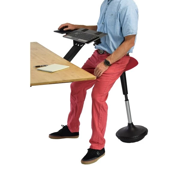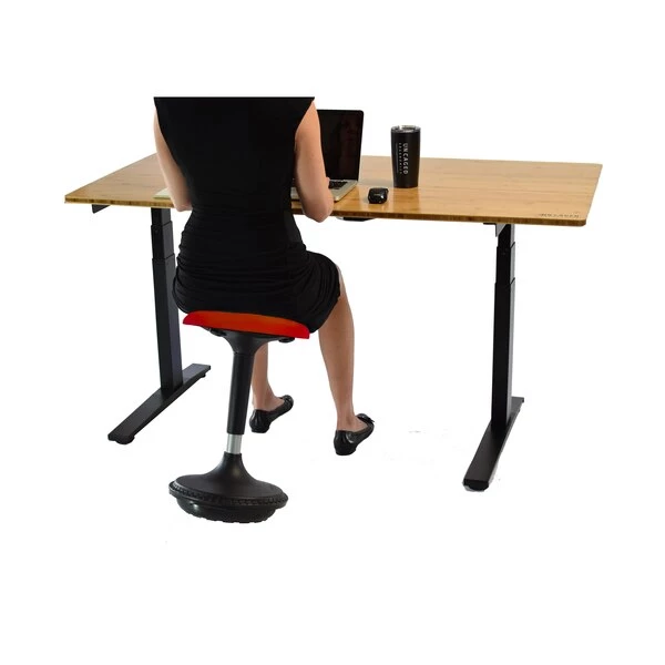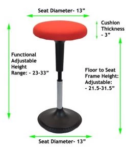 Wobble Stool is the perfect balance chair for active sitting. This ergonomic office stool creates a healthier sitting environment by moving with you throughout the day – safely rock, swivel, tilt, lean and burn calories while sitting. Originally designed to be the best standing desk stool, Wobble Stool extends tall enough to let you perch near standing height, making the move between sitting and standing fast and effortless. – BALANCE STOOL: Wobble Stool’s patented base lets you sit still or gently rock, tip, twist, lean and swivel 360. Move more and sit actively with this unique office balance stool. – STANDING DESK STOOL: the best perching stool for standing desks. The height adjustable Wobble Stool extends to 33", letting you rest from standing without going all the way down to a normal height chair. Wobble Stool is easy to sit on and quick to get up from. – COMFORTABLE OFFICE STOOL: NEW round, dimpled seat is engineered for better comfort! Wobble Stool has a 3”+ thick seat cushion made of premium molded foam that waterfalls over the edgeless seat frame and is covered with a premium fabric for a cool, comfortable seat. – DURABLE ROUNDED BASE makes it easy to rock, swivel and move around while sitting. You don't need to be in constant motion or balance because the special base design allows you to sit comfortably in a stationary (non-balancing) position. – TALL ADJUSTABLE HEIGHT WOBBLE STOOL (23-33"): lets you sit higher and stand up more frequently during the workday. – NON-SKID BASE securely grips most floor surfaces including carpet, wood, tile. PRODUCT SPECS * HEIGHT RANGE: Adjustable ~23-33” * SEAT DIAMETER: ~13”, Round Dimpled Shape * SEAT MATERIAL: Premium, 3”+ thick custom-molded high-density foam. Fabric cover * PRODUCT WEIGHT: ~20lbs * ASSEMBLY: Simple 4-step assembly | No Tools Required | No Screws | Takes 1 minute or less.