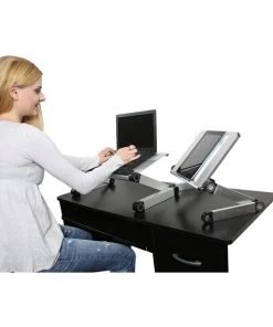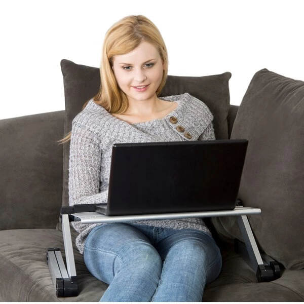 It’s the ultimate, ergonomic laptop stand! Two fans cool laptops, 3 USB ports give you more outlets to power accessories, the entire stand accordions up and down to perfectly position screens at eye-level. This adjustable laptop stand works everywhere you do – on the couch, in bed, sitting at a desk and even standing. The lightweight, durable stand is made of premium-grade, anodized aluminum and naturally dissipates heat to cool laptops. Each leg has special joints that accordion the stand up and down, adjusting the height and angle to perfectly position screens for optimal comfort. USES: * Laptop Lap Desk: Compute more comfortably when laying in bed or lounging on the couch. Raise laptops off your lap, keep them cool, and tilt screens to reduce glare. * Adjustable Laptop Riser: The perfect way to improve your posture! Comfortably elevate screens to eye-level, tilt screens to reduce glare, cool laptops, free-up space and organize your desk. * Laptop Standing Desk: A simple, affordable way to stand up and work on any desk. Elevate screens up to 21”, tilt the panel, and quickly collapse the stand when you’re finished. SPECS: (1) Outside Dimensions: 22x12x3 in (2) Panel Size: 18×10 in (3) Panel Features: 2 Cooling Fans + 3 USB Ports (4) Width Between Legs: 20.8 in (5) Product Weight: 3.3 lbs (6) Material: Aluminum