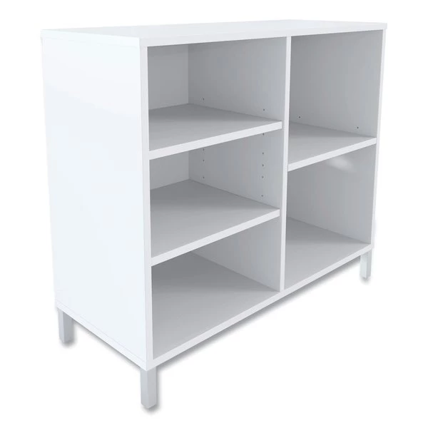 Boost productivity through increased organization. Sharp lines bring contemporary styling to your office. Adjustable shelving lets you create a customized setup. Cable management grommet keeps cords and wires out of sight, making this bookcase great for a phone, fax or other office electronics. Includes wall attachment hardware for safety.