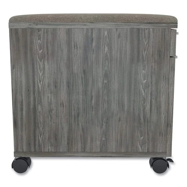 Bring layered organization options to your workplace. Spacious file drawer features a hanging file frame to hold folders neatly in place. Center drawer pull allows for smooth opening and closing. Smaller box drawer keeps office supplies out of sight for a streamlined look. Use the cushioned top surface as a backdrop for a desk lamp, picture frames or company awards. Five durable casters, two locking, provide effortless maneuvering. Includes key lock.