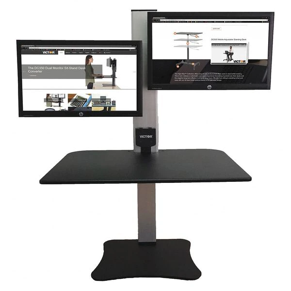 Victor Electric Dual Monitor Standing Desk, 23 in D, 28 in W, Black, Aluminum