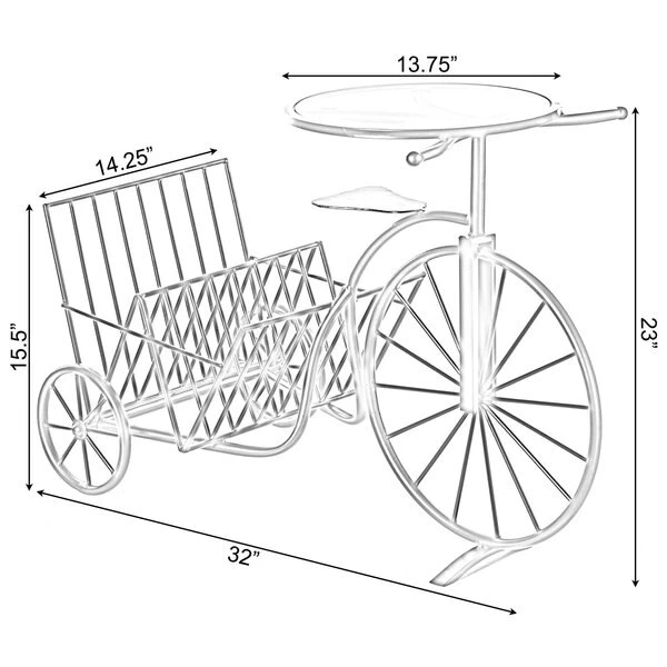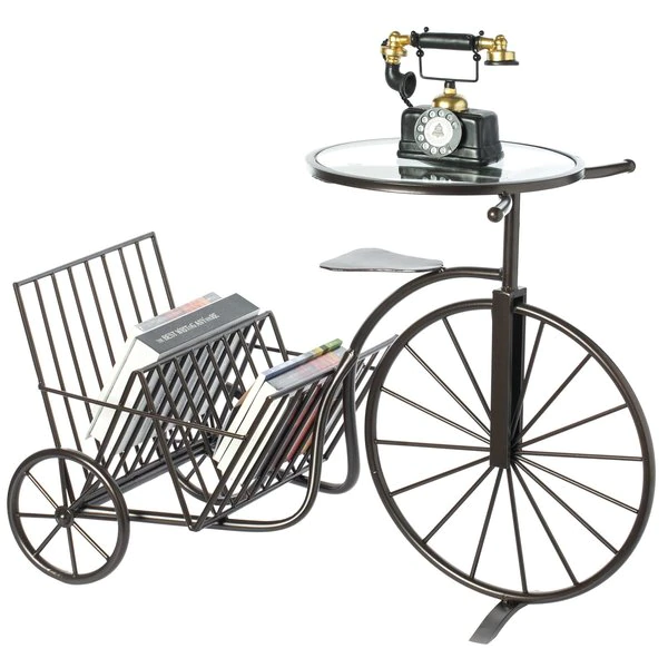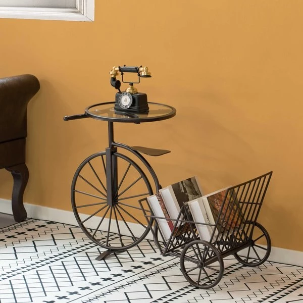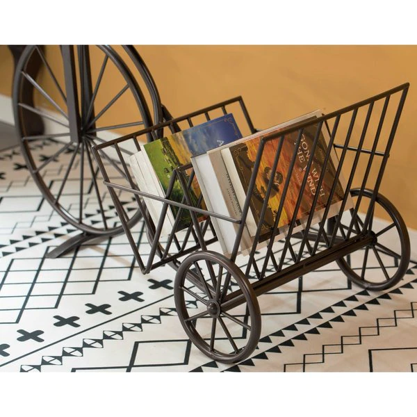 Complete the decor of your room with this vintage bicycle Magazine holder. Composed out of durable Powder coated metal material, this Magazine holder offers durability and practical function for continual use. Vintage metal designed base and bicycle shape create a decorative appeal to your room decor. Use this Magazine holder to keep magazines, catalogs, books, mail… organized, keep flowers, phone, or small decorations on the table top.