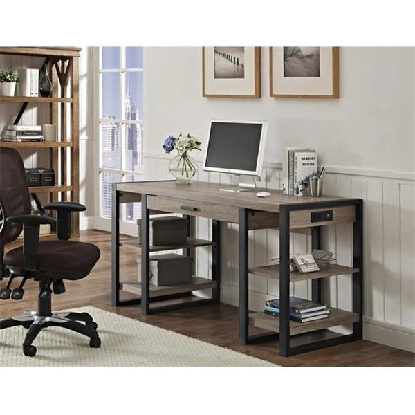 Complete your home office with this urban tech desk. Features a built in usb port and ac plug-in for additional power supply. Its open side shelving and pull-out drawer provide ample storage space to fit your office essentials. Crafted from high-grade mdf and powder-coated metal legs for a sturdy yet stylish office desk.FeaturesPower supply includes usb port and ac plug-in.Unique tech desk.Rich. textured finish.High-grade mdf.Powder-coated metal frame.Spacious open shelving.Ample storage space.Pull-out drawer.Finish – Driftwood/black.Material – High-grade mdf. powder coated steel.Dimension – 24 D x 60 W x 30 H in.Item weight – 70 lbs.