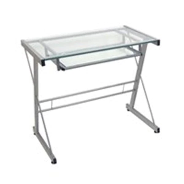 Description: This contemporary desk offers a sleek modern design crafted with durable steel and thick tempered safety glass. The size provides for more space and the design creates a look that is both attractive and simple. Also included are a universal autonomous CPU stand and a sliding keyboard tray. This desk compliments any room and is a great addition to any home office. Features:Stylish modern designPolished and beveled tempered safety glassDurable steel frame with a silver finishUniversal autonomous CPU standSliding keyboard trayAll glass is 6mm thick Ships Ready-to-Assemble with all necessary toolsAssembly instructions plus toll-free number and online support availableFinish: SilverMaterial: Tempered Safety Glass SteelMaterial of Top: Tempered Saftey Glass
