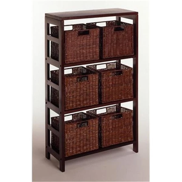 For over three decades Winsome Furniture has been a manufacturer and distributor of high quality pantryware and lifestyle furniture for the home. Specializing in solid wood Winsome has continually brought forth innovative products in combinations of solid wood and other various materials such as wrought iron aluminum steel marble and glass. Decorate in your style and display only the best quality today. Espresso finish Beech Wood and Rattan Assembly required Dimensions are 11.25 inches L x 25.25 inches W x 42 inches H Weighs 33 pounds