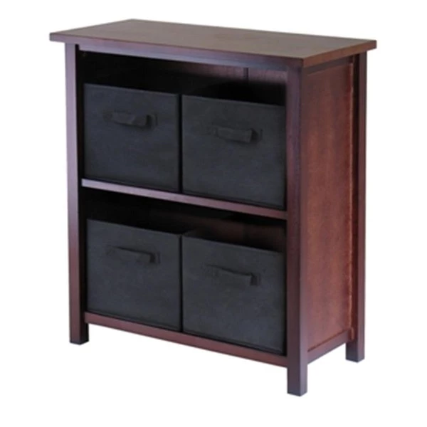 For over three decades Winsome Furniture has been a manufacturer and distributor of high quality pantryware and lifestyle furniture for the home. Specializing in solid wood Winsome has continually brought forth innovative products in combinations of solid wood and other various materials such as wrought iron aluminum steel marble and glass. Decorate in your style and display only the best quality today. Verona 2-Section M Storage Shelf with 4 Foldable Black Fabric Baskets – Walnut. Dimensions (L x W x H): 28 x 13 x 30".