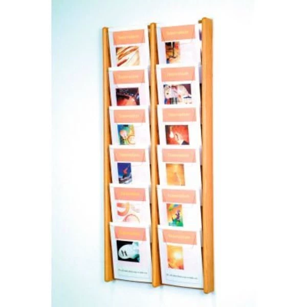Wooden mallet's acrylic & oak wall displays are specifically designed to hold single sheets of paper without drooping. This beautiful wall mountable rack will showcase your literature in style. Our innovative overlapping shelves allow you to display more literature in less space. The frame is finished in a light oak color.