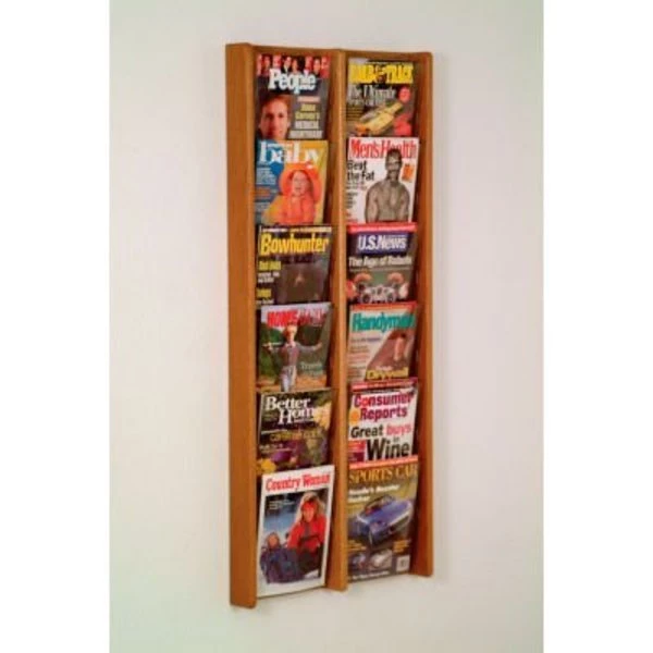 Wooden mallet's acrylic & oak wall displays are specifically designed to hold single sheets of paper without drooping. This beautiful wall mountable rack will showcase your literature in style. Our innovative overlapping shelves allow you to display more literature in less space. The frame is finished in a medium oak color.