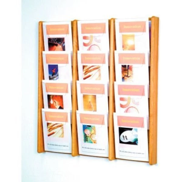 Wooden mallet's acrylic & oak wall displays are specifically designed to hold single sheets of paper without drooping. This beautiful wall mountable rack will showcase your literature in style. Our innovative overlapping shelves allow you to display more literature in less space. The frame is finished in a light oak color.