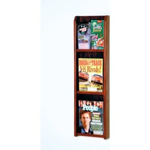 Wooden mallet's oak & acrylic wall displays will add warmth and class to your magazine and literature collection. Clear acrylic panels allow full view of literature while keeping it neat and organized. The frame is finished in a mahogany color. Add our optional floor stand to create a floor display.