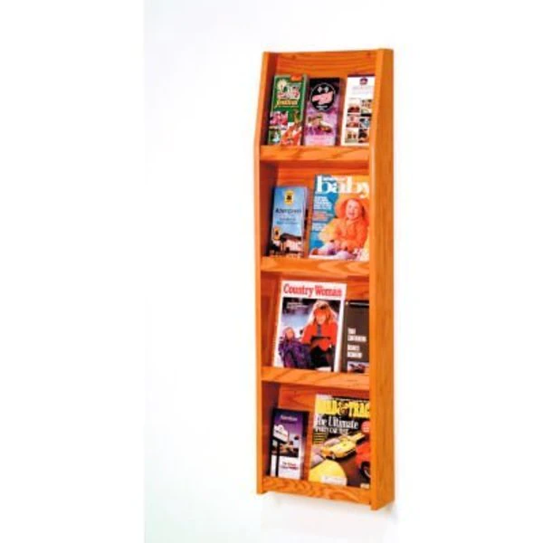 Wooden mallet's full-view literature displays are a classic and beautiful way to display your literature. Slanted back shelves allow full view of literature while keeping it neat and organized. The frame is finished in a medium oak color. Add our optional floor stand to create a floor display.