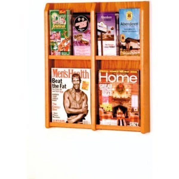 Wooden mallet's oak & acrylic wall displays will add warmth and class to your magazine and literature collection. Clear acrylic panels allow full view of literature while keeping it neat and organized. The frame is finished in a medium oak color. Add our optional floor stand to create a floor display.