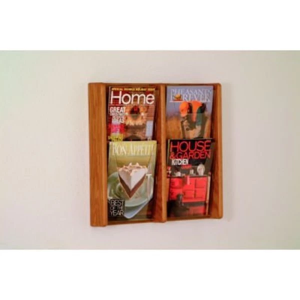 Wooden mallet's acrylic & oak wall displays are specifically designed to hold single sheets of paper without drooping. This beautiful wall mountable rack will showcase your literature in style. Our innovative overlapping shelves allow you to display more literature in less space. The frame is finished in a medium oak color.