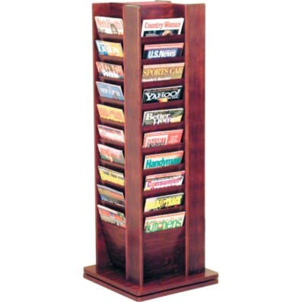 Oak literature organizers 40 pocket revolving floor display attractive literature organizers neatly display and organize printed materials. " thick solid oak frame with laminated oak panels. Oak front pockets measure 9"w x "d to hold 8-1/2" x 11" literature. Easily assembled.
