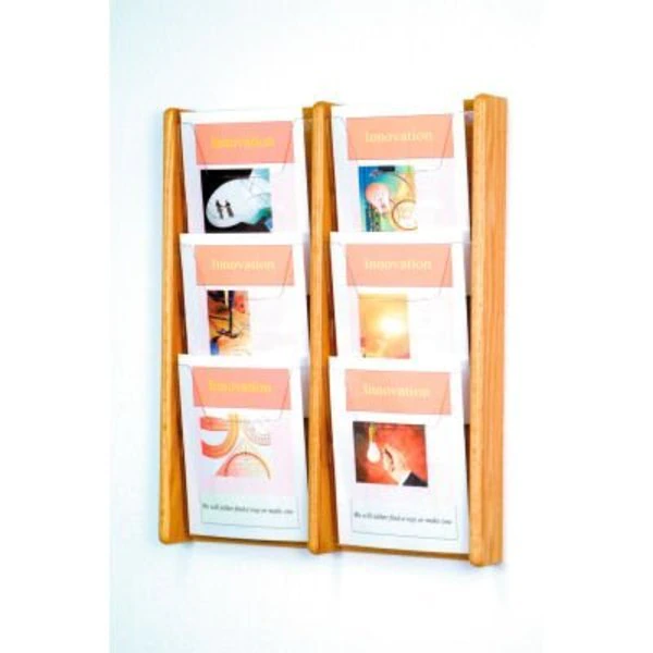 Wooden mallet's acrylic & oak wall displays are specifically designed to hold single sheets of paper without drooping. This beautiful wall mountable rack will showcase your literature in style. Our innovative overlapping shelves allow you to display more literature in less space. The frame is finished in a light oak color.