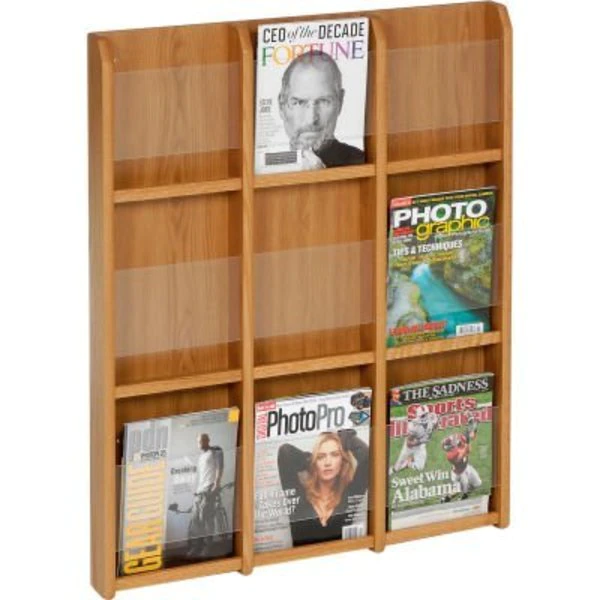 Wooden mallet's oak & acrylic wall displays will add warmth and class to your magazine and literature collection. Clear acrylic panels allow full view of literature while keeping it neat and organized. The frame is finished in a medium oak color. Add our optional floor stand to create a floor display.
