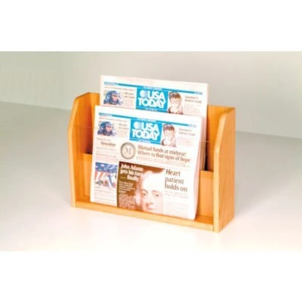 Wooden mallet's oak and acrylic countertop racks add warmth to any room while displaying your magazines and literature. The frame is finished in a light oak color.