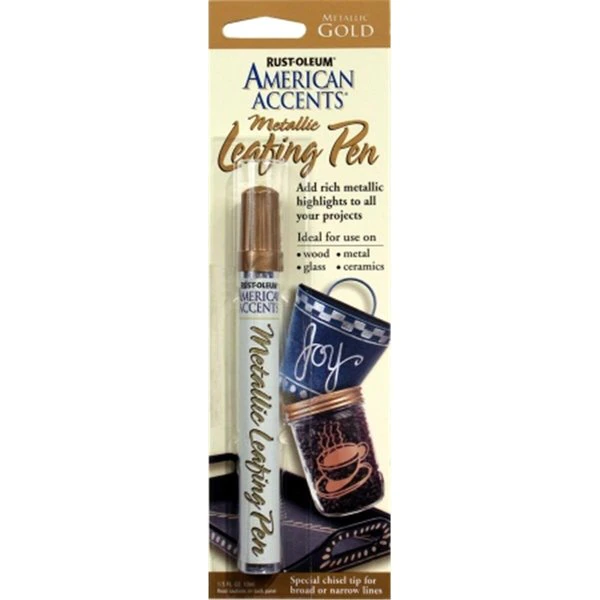 <li>Leafing pen </li><li>Adds premium metallic finish to any craft or home décor project </li><li>Apply to most surfaces including wood, metal, paperboard, glass, unglazed ceramic and some plastic </li><li>Durable formula applies with special chisel tip for broad or narrow lines </li><li>American Accents series </li><li>Metallic Gold </li><li>1/3 oz </li><li>Width: 2.75</li><li>Height: 9</li>
