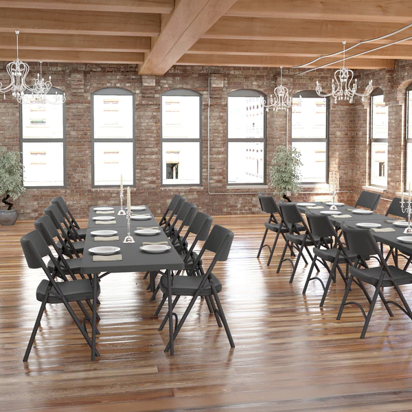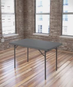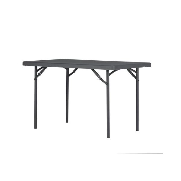 Zown commercial resin folding table, 48" x 30", soley distributed by Cosco, is made from high density resin and can be used indoors or outdoors. Steel frame for durability. Easy to set up, taken down and transport. Non marring foot caps. 600 lbs. capacity. All shark grey color. Open dimensions 48" x 30" x 29.25". Table is light weight at 22.8 lbs.